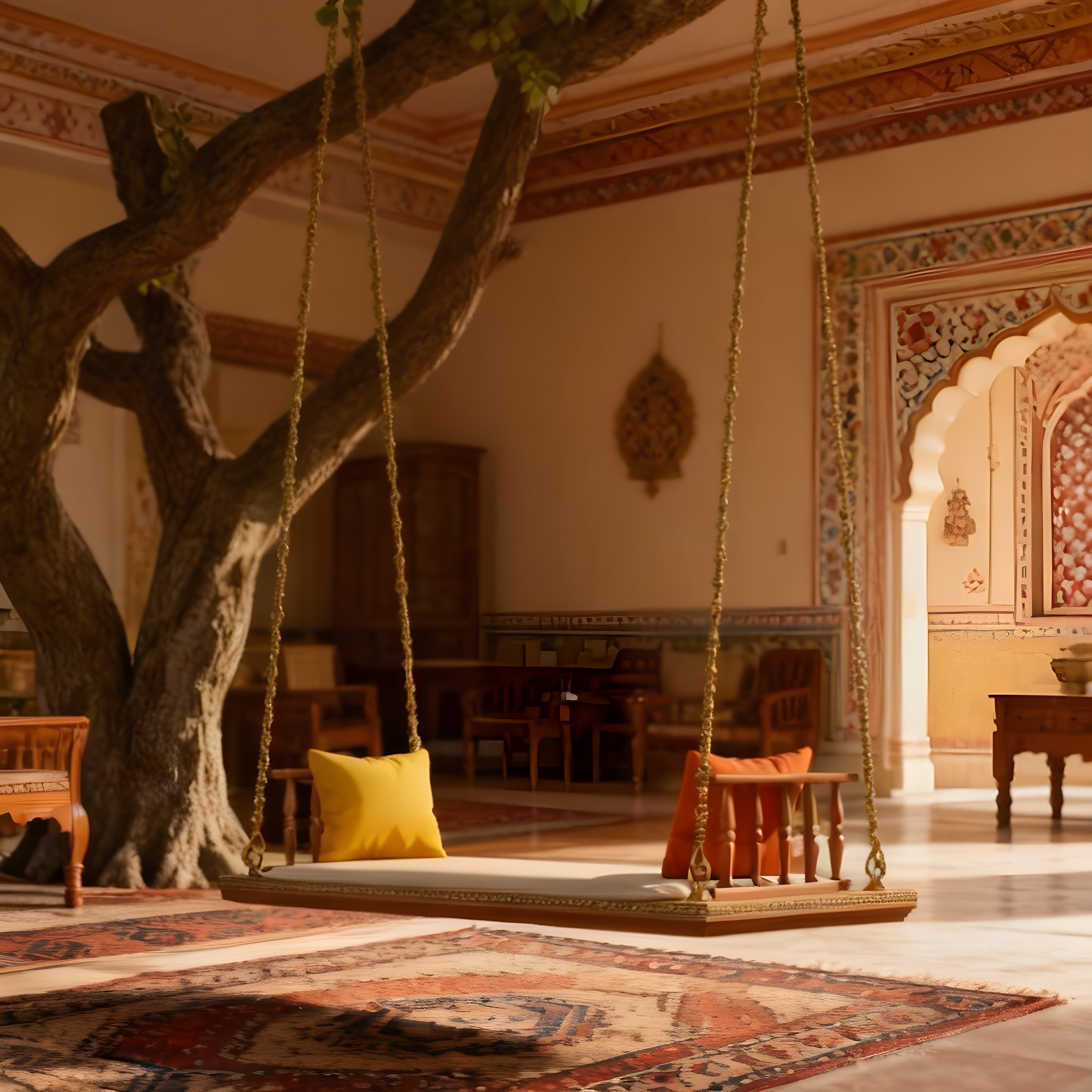 The Serenity Canopy Garden Swing is a luxurious outdoor lounging piece inspired by resort-style relaxation. Designed with a wide flat teak platform, plush cushioning, and graceful suspension ropes, this swing creates a peaceful retreat in garden spaces, patios, and poolside landscapes. Its handcrafted wooden side rails and soft accent pillows add both comfort and timeless elegance, while the suspended construction delivers a gentle, calming sway for everyday unwinding.